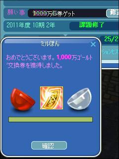 願い通りの1000万券オメデト♪ (○´・∀・)o<・。:*゚;+. パ-ン!! |