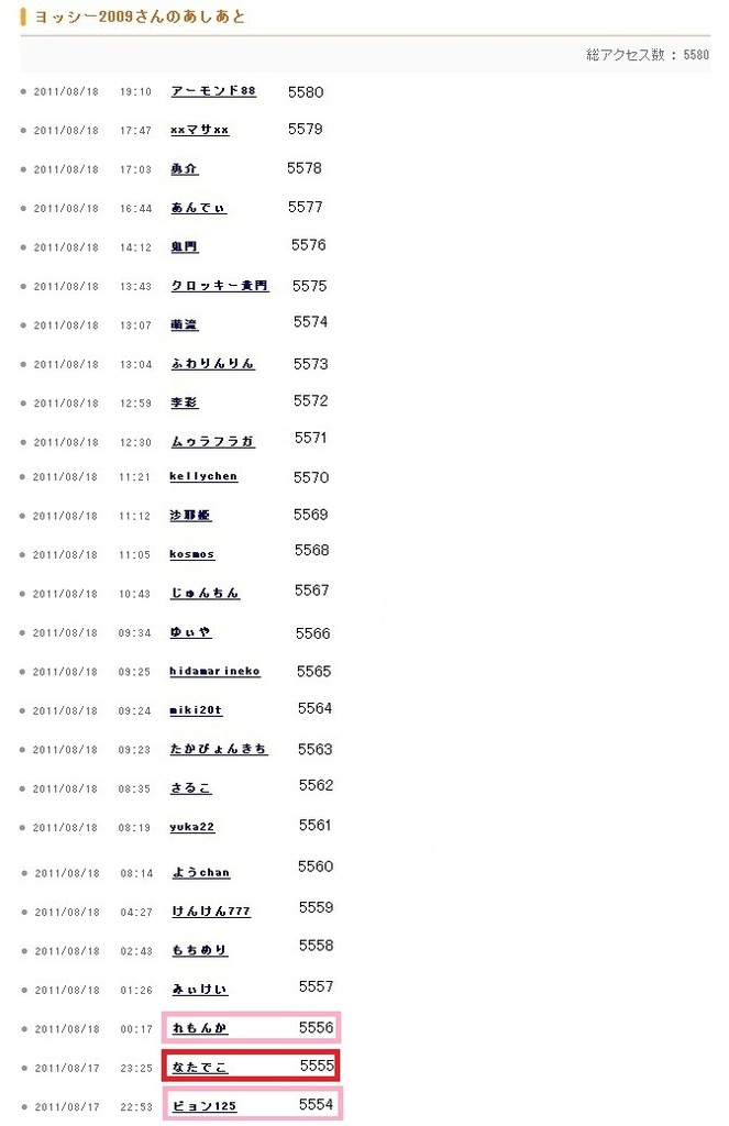 5555番 なたでこさん5554番 れもんかさん5556番 ピョン125さんそして、こちらへ訪問してくれているみなさん、ありがとうございました^^これからもどうぞよろしくお願いします^^
