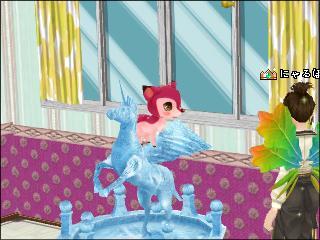 お部屋で、氷の馬の上で涼む ルクちゃんw