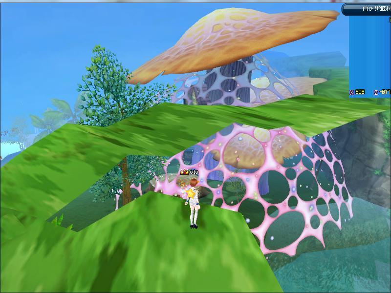 滝の近くの大きなきのこの上に乗ったり 森で思う存分楽しみました。