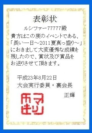 表彰状いいねぇ^^