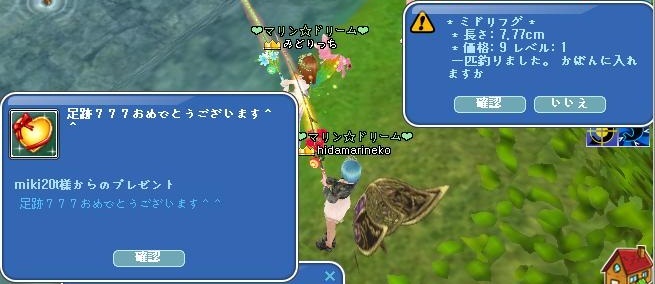 後でSS見たら偶然釣り上げたミドリフグも777だった