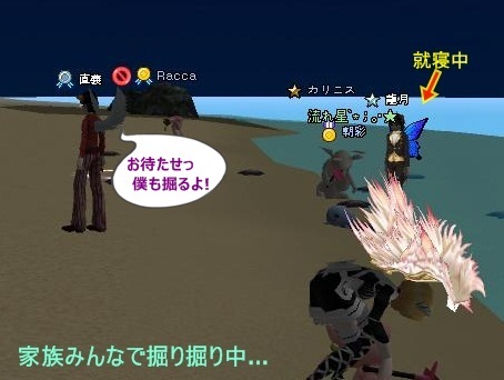 どうやら、実弟・月成君の貝殻掘りに、家族総出。