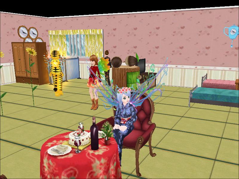 こちらのお家は、床が和風で、時計がいっぱいあったり、ヒマワリが部屋の真ん中に会ったり、