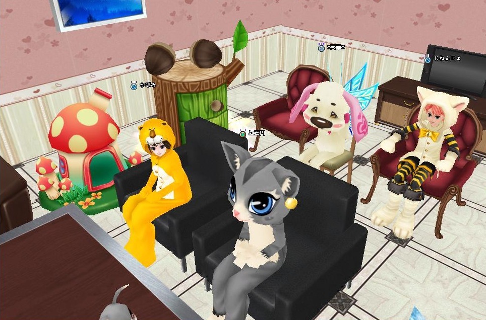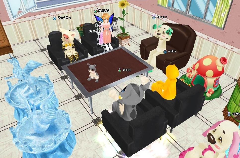 その後座れるイスと座れないイスがあるっていう話になってしばらくイス取りゲームになってましたが、ふっぴさんはここの画面外のファミリーソファに座ってもらいますた(・3・