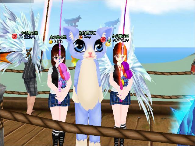 双子と戯れる巨大にゃんこの図w