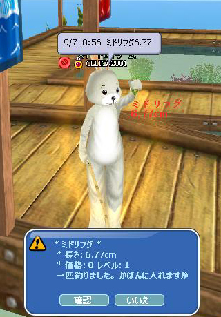 まだ、掲示板を確認していないので開催されているかどうかは不明ですが、さっき「ザッケローニ監督」の13戦無敗記録更新が決まった頃、ミドリフグの6.77cmが掛かったので登校用のSS撮ってみた(≧▽≦)ゞ
