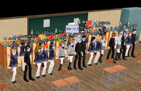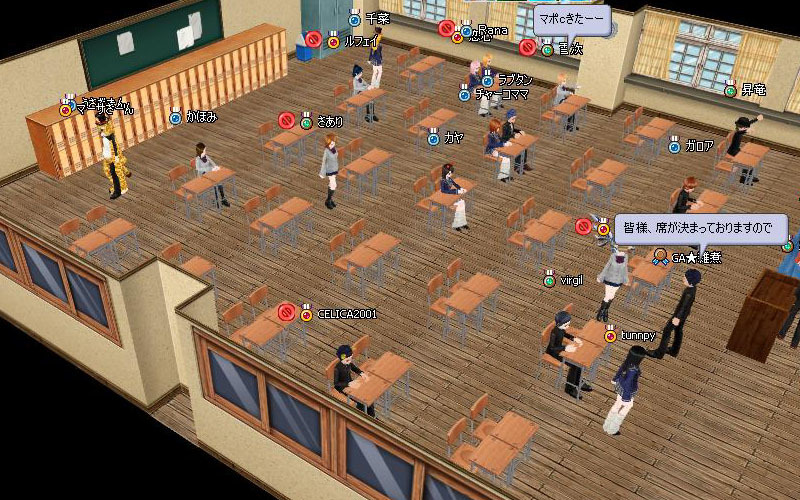 ちらほらと集まりだした時間一杯ごろから、遅刻者がどんどんn入室して席に着くとそれらしい光景になす♪