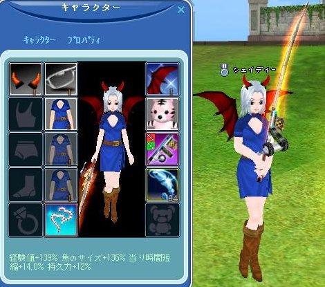 この服属性が経験値・魚のサイズ78%ついてるのですごいです~ヾ(@▽@*)ノ