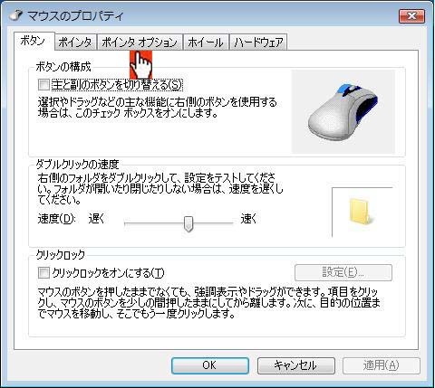 マウスのプロパティの上部タグの中から ポインタオプションをクリック