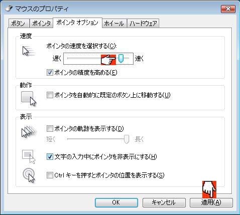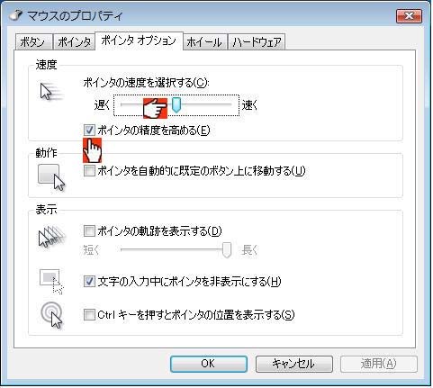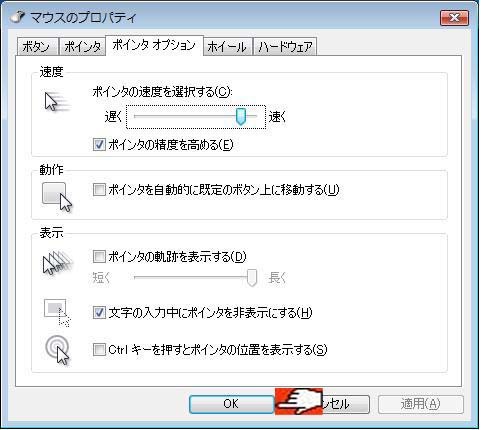□ポインタの精度を高める(E)は チェック(レ点)を入れてあります。