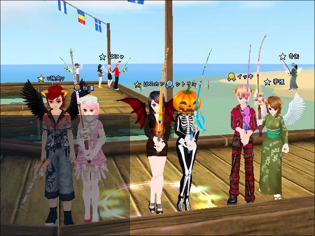 | 骨かぼちゃ!w イッキパパ似の麗しいお姉さまのお顔が(_ _ 。)シュン。。。でも皆で並んで釣るの楽しいよねw 密着するの(つ∇`★)好きぃ♪ |