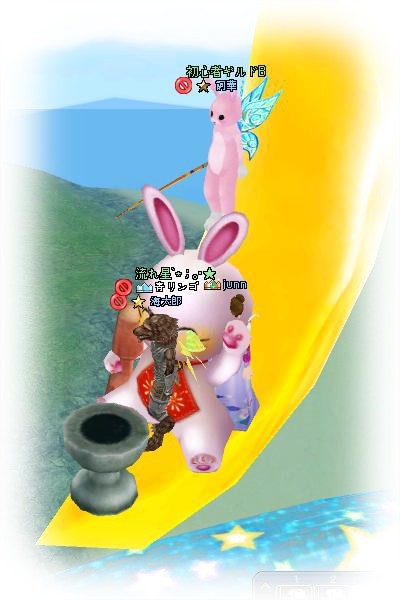 この後は虹にも登り、そこから落ちたりと