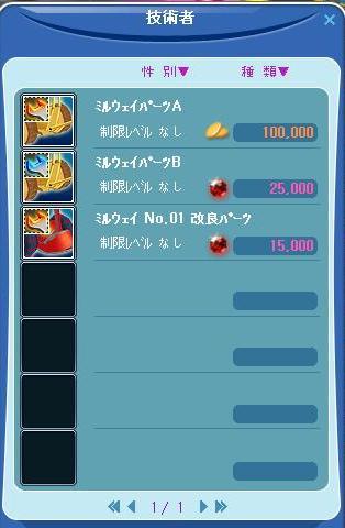 ミルウェイNo.1改良パーツは、<技術者>マックにて購入するか、