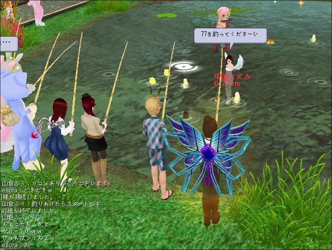 ふうさんが釣りあげた魚の下二けたと同じ数字を早く釣りあげた人の勝ちというもの