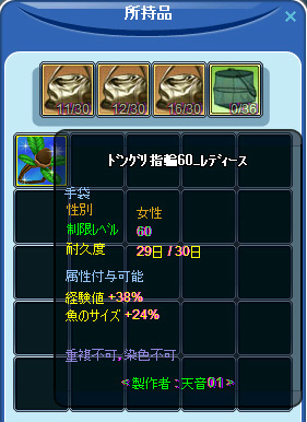 16時40分 前回に2段までしてあった60指輪 材料集めしてチューンに挑戦。