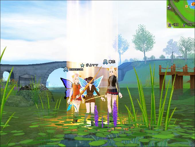前日 ひよママちゃんレベル19UPに立ち会いました。橋を背景にしました。