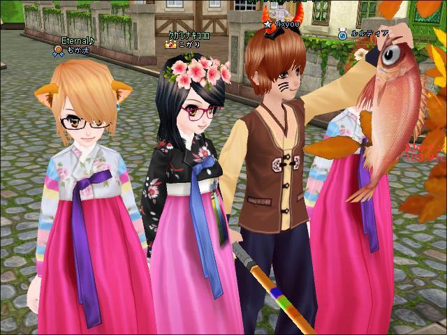 ゆうべ遅くにインすると、あやねさんともかさんがインしてきたので、一緒に釣りました。