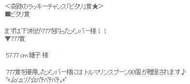 今回は777賞がいただけたとか・・・?