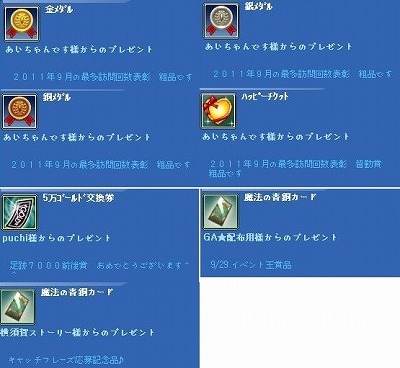 あいさんからマイペ訪問、クラスメートのpuchiさんと横須賀ストーリさんからそれぞれ足跡、キャッチフレーズ応募のプレゼント貰いました