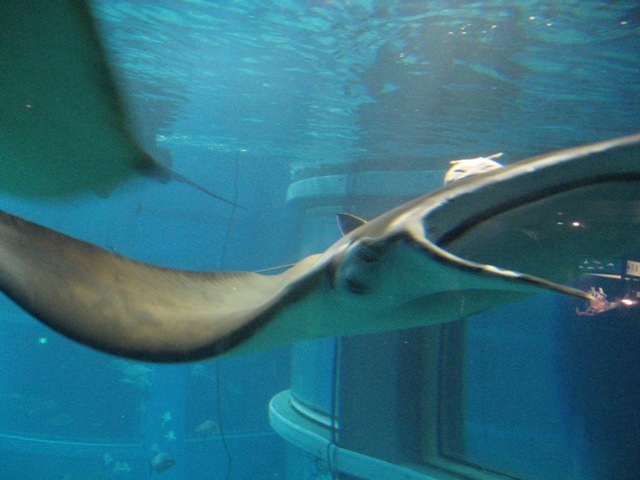 マンタには狭い水槽・・・空中回転することも、多かった。