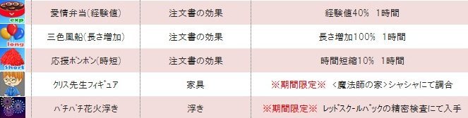 ・赤いカバンから出るレアアイテム変更 パチパチ花火浮き 経験値・長さ40%