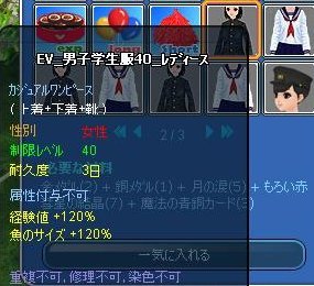 Ev服Lv40・60・80 確率40% 修繕可に調合15%