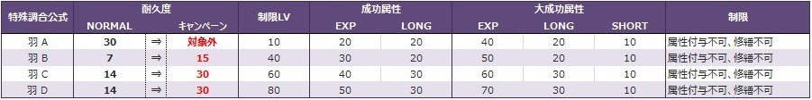 ★特殊調合羽の耐久度アップキャンペーン
