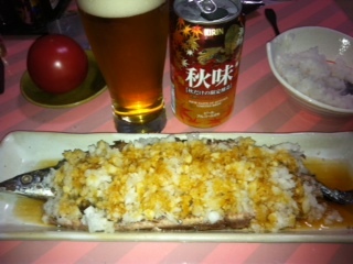 焼きあがった秋刀魚に大根おろしをどさーーーーっと乗せて、醤油を垂らして。