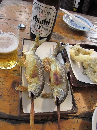 ビールにアユの塩焼き、贅沢ですね(❤ฺ→∀←) |