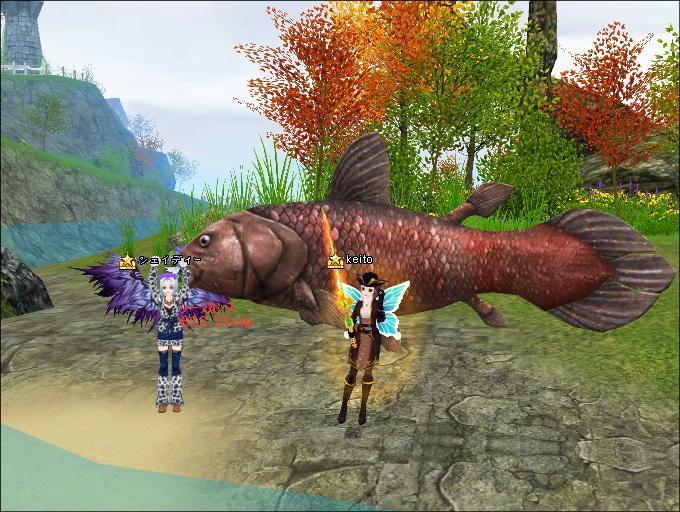 メンテで実装されたシーラカンス今のところ食い逃げ8匹中2匹とそれほど確率高くない?体力が重く釣り上げるのがちょっと大変ですが経験値がいいらしい♪