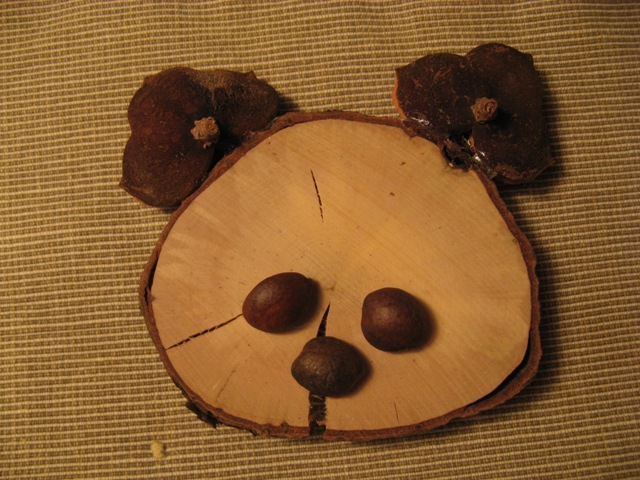 なんかの木の土台に、椿の実と殻の造形を生かしていますw