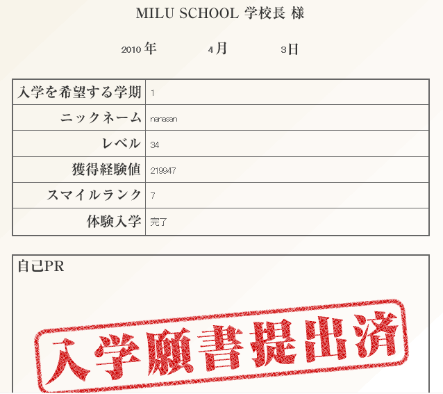 MILU学園入学願書・・・・やっと受け付けてもらいました。