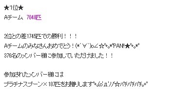 Aチーム優勝★:゚*☆※>('-'*)♪オメデトウ♪(*'-')<※★:゚*☆ |