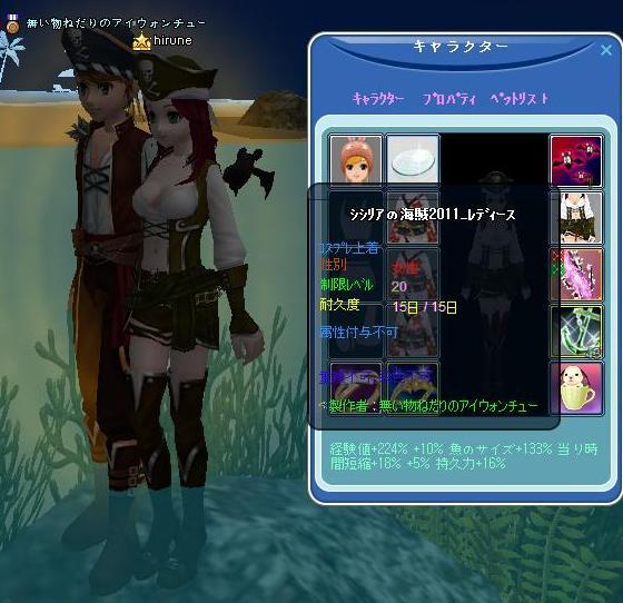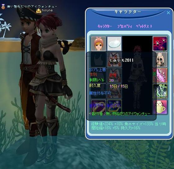 昨夜、インすると・・渡されたwカードと月の涙が貯まったからと・・5回挑戦したらしいwシシリアの海賊は、コス再生材料にしちゃったので~嬉しい♪くのいちは、猫パパに頂いてるのがあるので・・これは、露店行きだな・・|ョω・´)ジーwいい女には、プレタポルテじゃなきゃ駄目だと・・大成功を狙ってる、だーりん❤初めての挑戦で、なりきりビシュ出しちゃったもんだから・・・簡単には大成功って出来ないと、痛感してる・・らしいw大嫌いなヤナに、何度も挑んでるってのが・・とても愛しいです(ノロケてますww5回で、2着できるって・・凄いんだよ~だーりん❤゚.+:。(´∀`)゚.+:。ありがとう!☆★☆★☆★☆★☆★☆★☆★☆★☆★☆★☆★☆★☆ 1周年記念のプレ届いた!お祝いするのは、こちら側なのにぃ~どうもありがとう!夜鯖仲間で、いつも亀3イケスでご一緒してるぅ~♪゚・:*:・。(=゚ω゚)ノくまりん、MILU1周年☆おめでとヽ(゚ω゚=)。・:*:・゚