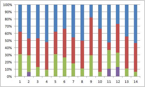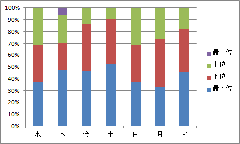 こちらはひっくり返して(上位の方が重要なので)2週間分並べたグラフ。