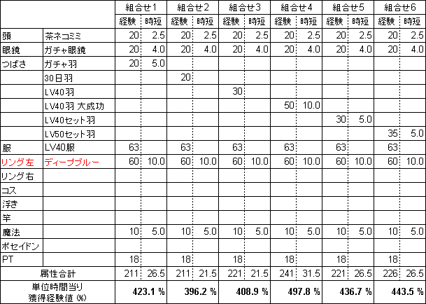 4. LV40リング、大成功コス、浮きなどの装備については、時短に影響を及ぼさないので今回は装備しません。後日改めて考察してみます。