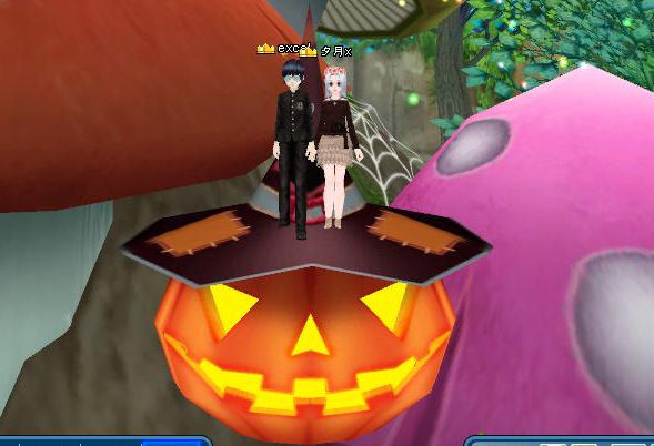 コウモリにさよならした後は、キノコの森に行ってカボチャに乗ってみましたw