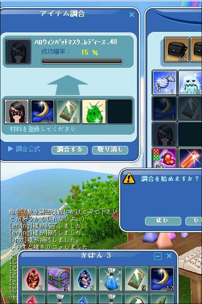 メンテ前に使えなくなるアイテムを処分したいと思って、マスクが×と知り、まだ無茶な気持ちに走ちゃいました^^;