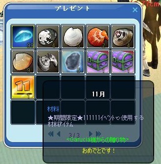 いろいろ貰ったけど、午前中のタコで11月のカードが一枚足りず調合できずにいたけど、これで111111のカード調合できました