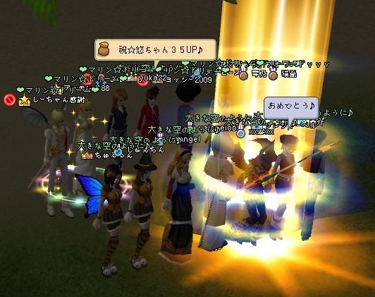 昨日の夜ですが、大空ギルドの悠ちゃんがLv35に節目アップー^^