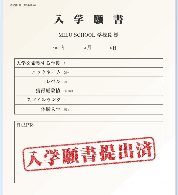 ミルトモさんのご協力のお陰でミッションをクリアーすることが出来、願書を提出