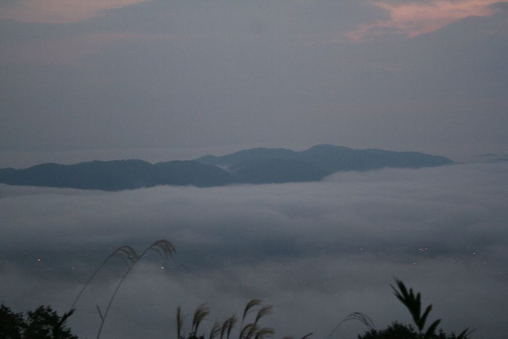 ウェブで「高谷山」で検索するとライブカメラもあります。でもじかに見ないとなかなかあの雰囲気は分からないな。6時前の真っ暗なうちにてっぺんに登っとくと、展望台がしつらえてあって、しばらく待つとどんどん明るくなって、下に街明かりが見えているけどだんだん明るさに消えてきて。