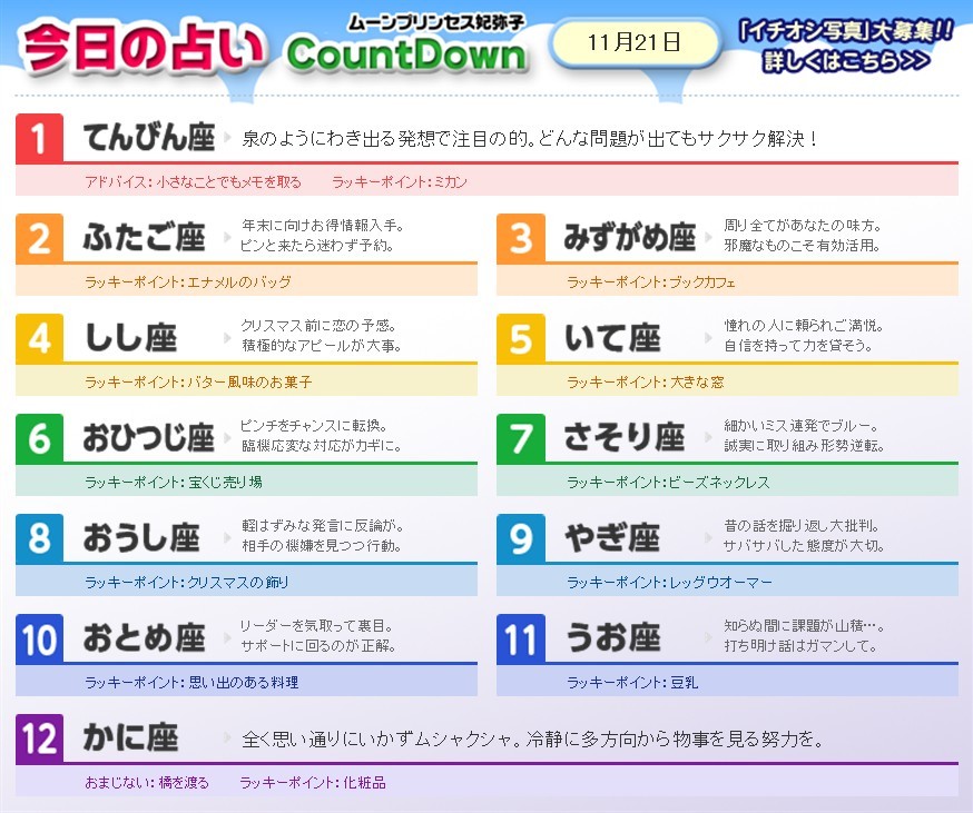「めざましテレビ占いで、てんびん座6位以下の時は何もしない☆」