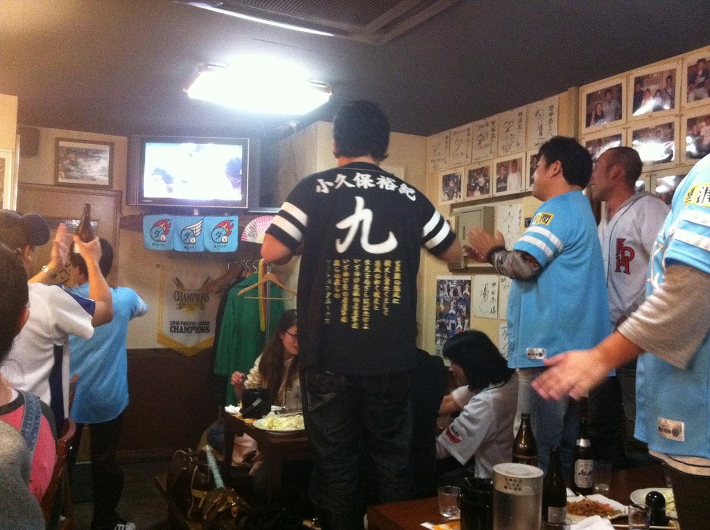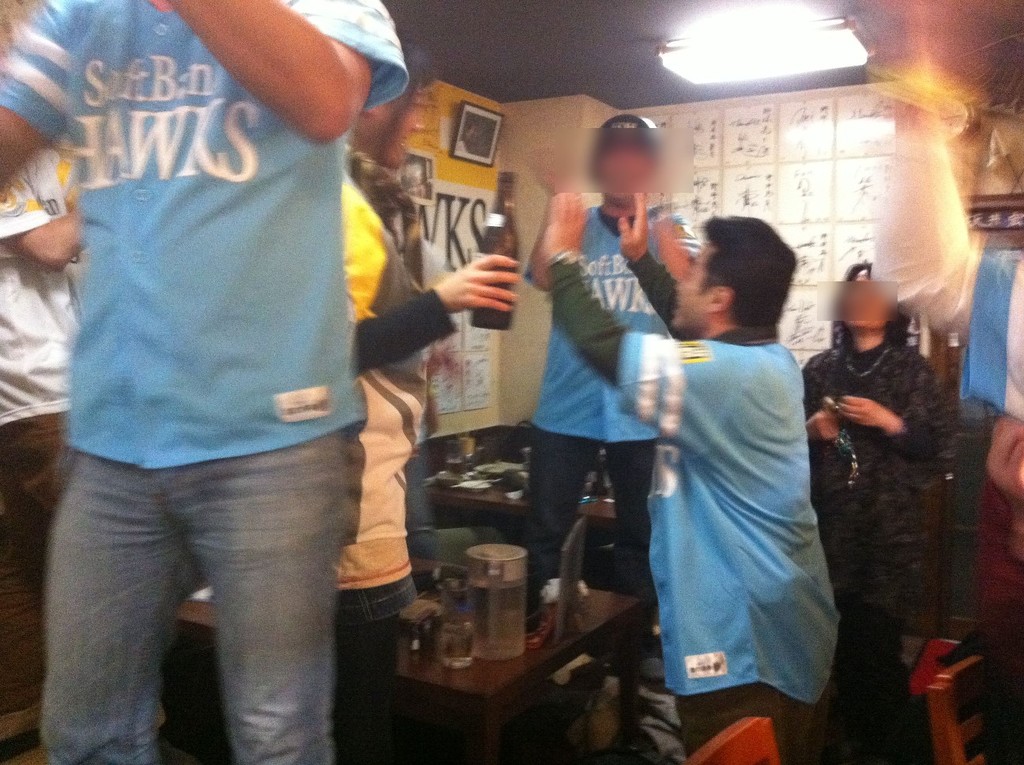 7回裏には、ホークス応援歌「いざゆけ若鷹軍団」を大合唱。