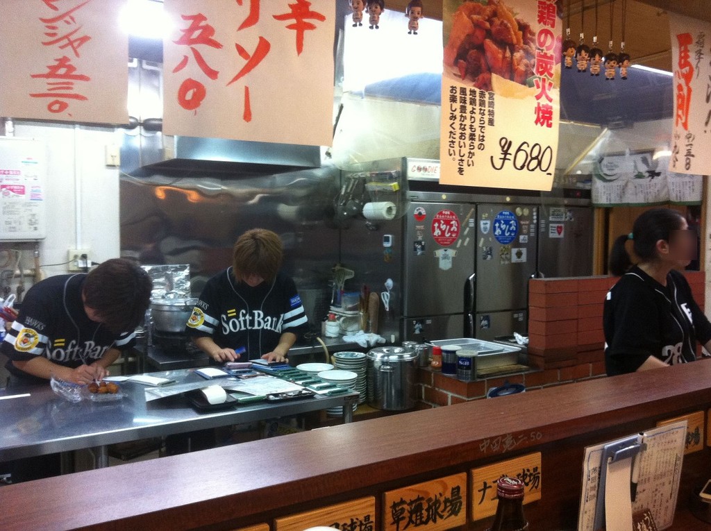 お店の人たちはもちろん、ホークスのユニフォーム。