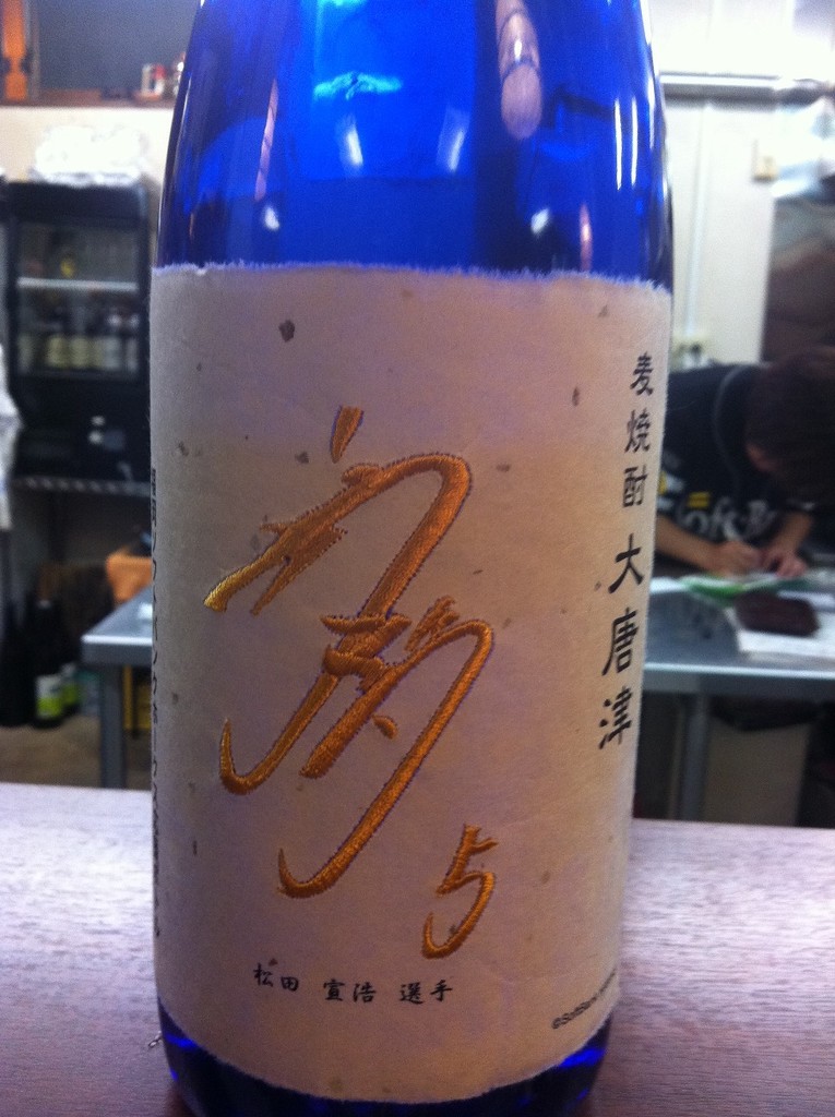 背番号5番、松田宣浩選手のサインがラベルに刺繍された麦焼酎。旨かった(´ー`)
