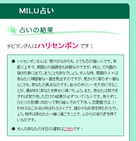 MILU占いやりましてけど、面白くないです(o´・ω-)b ネッ♪
