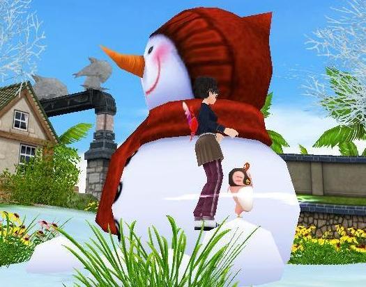 まずは、テッキー君と雪だるまに絡んで