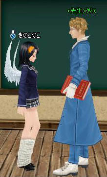 ミッション達成報告に、クリス先生に会いに行きます(1年生なので)。